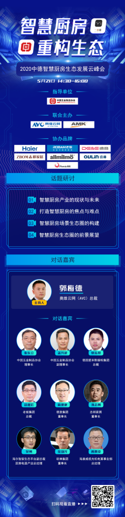 在超過20萬人的共同關注下,本次云峰會圍繞“智慧廚房產業的現狀與未來、打造智慧廚房的焦點與難點、智慧廚房場景生態圈的構建、智慧廚房生態圈的前景展望”等行業關心的幾大話題展開研討。