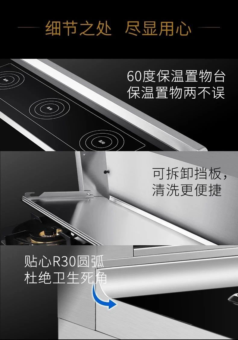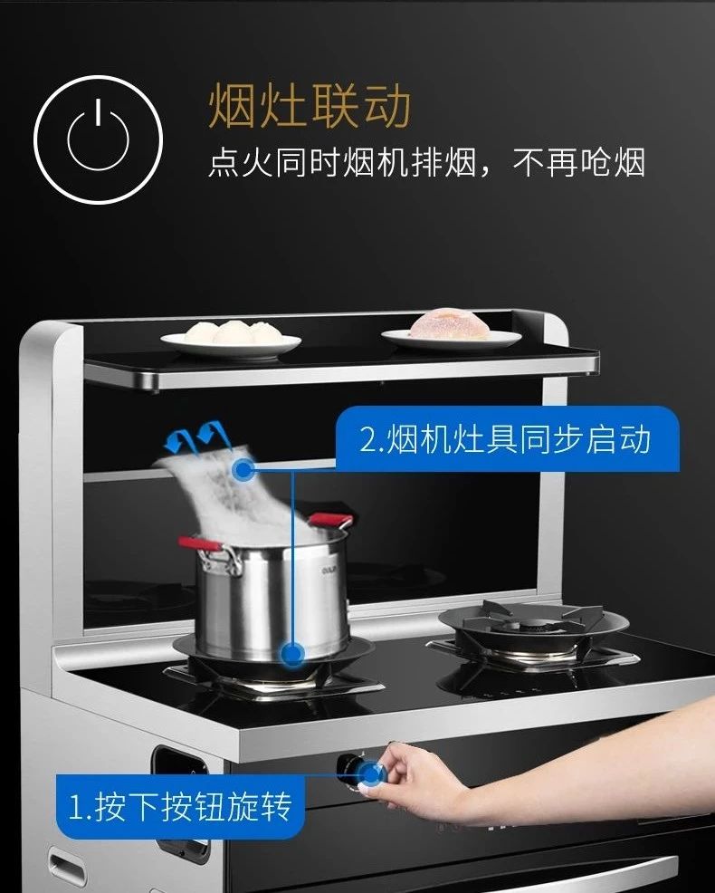 省心功能-煙灶聯(lián)動和煙蒸聯(lián)動設(shè)計,在開啟灶具的同時煙機亦會同步啟動,告別遺忘和煙熏火燎 。