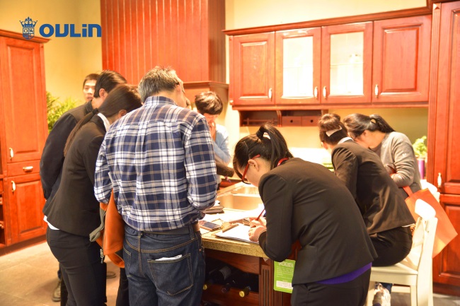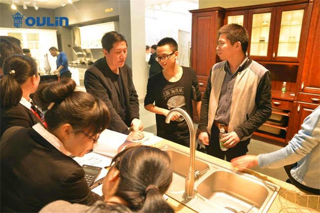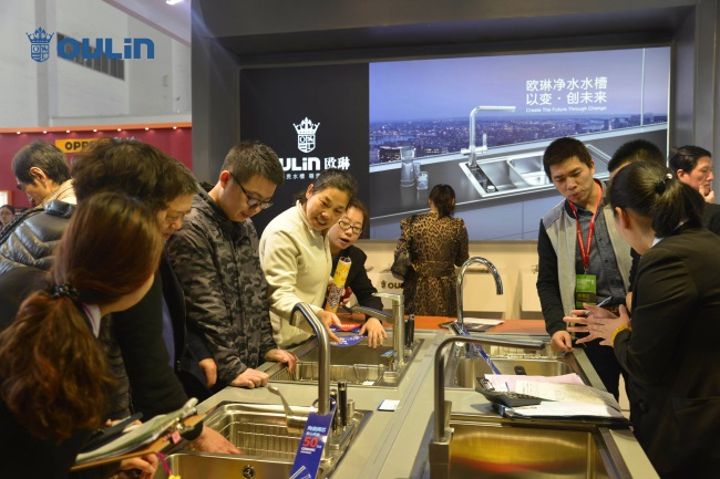 在摩肩擦踵的OULIN歐琳水槽展區,現場消費者反響熱烈?!斑@款產品雖然價格有點貴,但是我始終相信一分錢一分貨?!?月8日上午,在OULIN歐琳展廳時尚衣柜展區,剛剛訂購了一臺OULIN歐琳凈水水槽的吳女士又忙著挑選衣柜。她說現階段的裝修,他們更注重的是健康和品質。