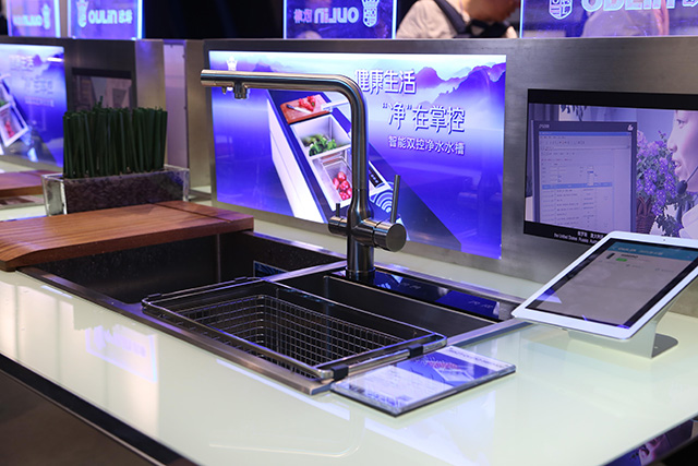 去年,歐琳以一款廚房神器——凈水水槽開行業先河,引爆展會現場,吸引眾多關注。今年,歐琳將健康用水的概念貫穿全線,當然,最為引人矚目仍屬歐琳的智能雙控凈水水槽,創新升級后的凈水水槽,賦予產品更多超出傳統的功能,智能水質顯示,健康飲水看得見;濾芯壽命顯示及時提醒更換,用水更安心;智能WIFI物聯 ,遠程使用更放心;同時另一款新品凈洗水槽也以創新水槽空間,高效洗滌流程,將水槽從單一的洗滌時代帶入健康多功能中心時代。